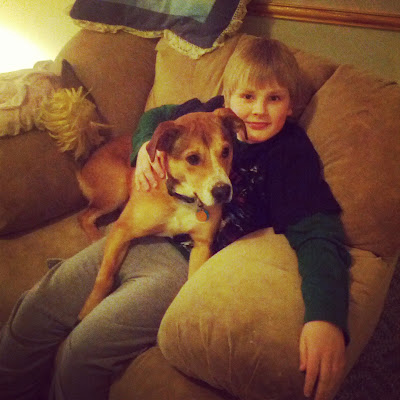 my crazy kids and grammi's new dog woody